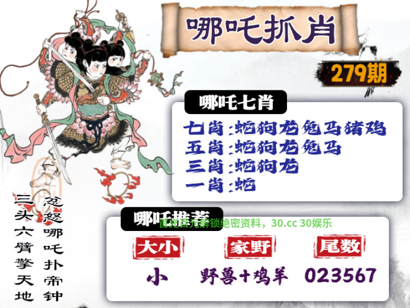 279期绝杀三肖【鼠龙狗】开:兔27中 |